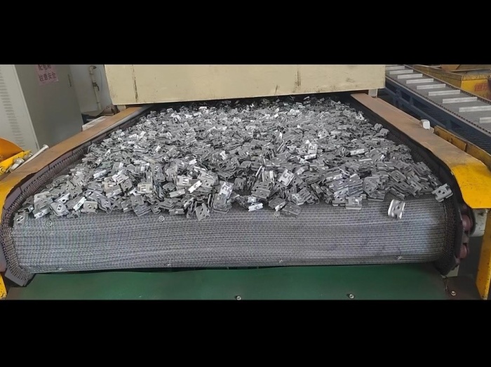 達克羅涂裝生產線涂覆完達克羅涂層冷卻后的成型件,進入冷卻下料段